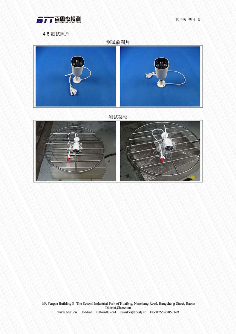 2018年7月,普順達的158型號室外槍機,通過IPX5測試,該款攝像機具有室外防水功能,下面是檢測報告。